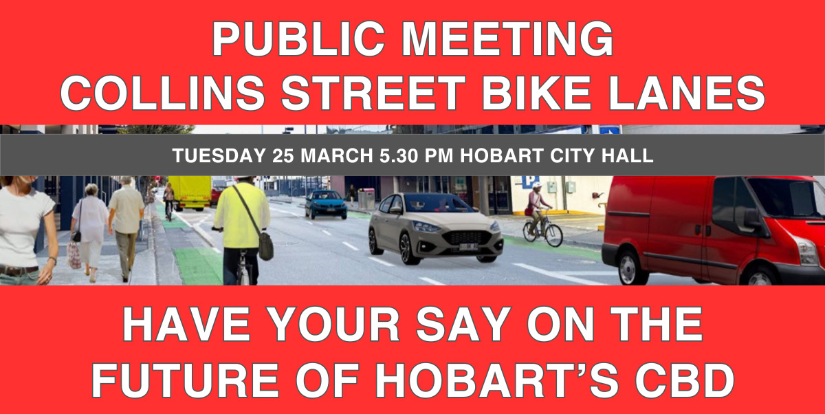 2nd March 2025: A public meeting at Hobart’s Town Hall to discuss the controversial proposed Collins Street bike will be moved to a bigger venue.