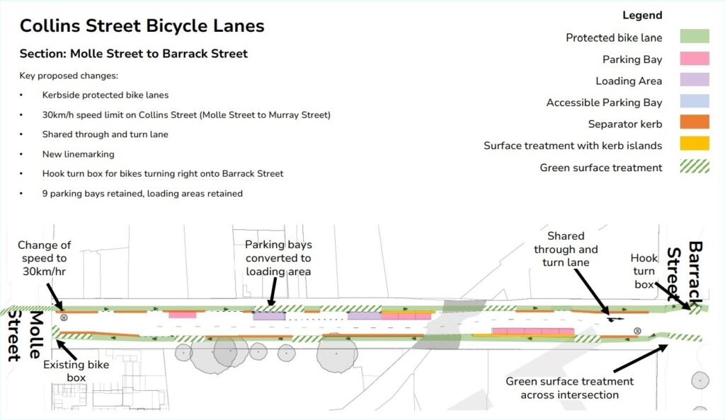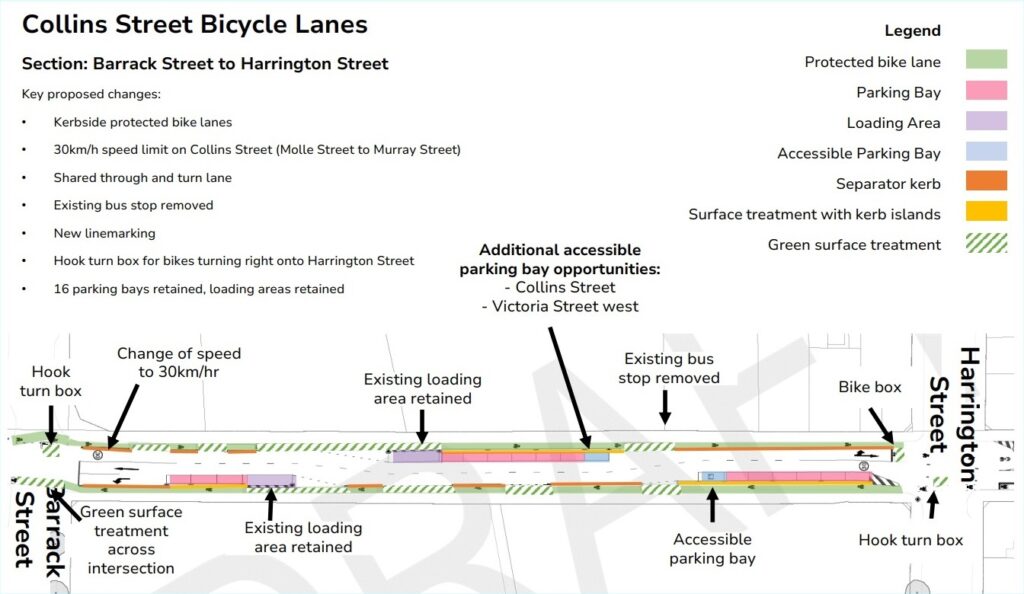 The City of Hobart plans to remove 59 parking spaces from Collins St in the inner CBD to make way for dual bike lane.